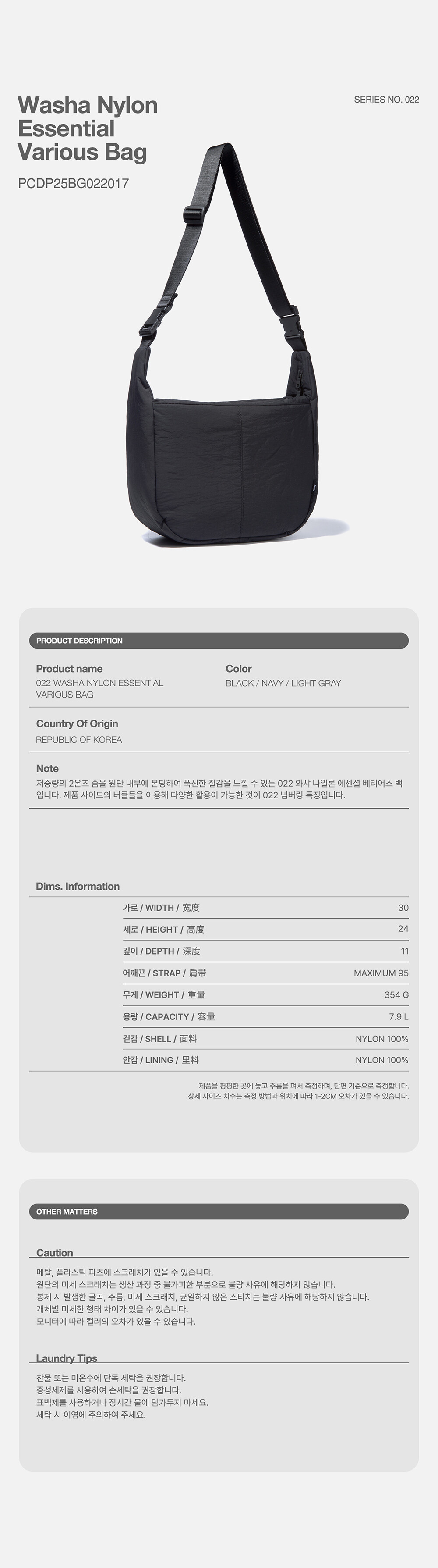 022 WASHA NYLON ESSENTIAL VARIAOUS BAG-BLACK