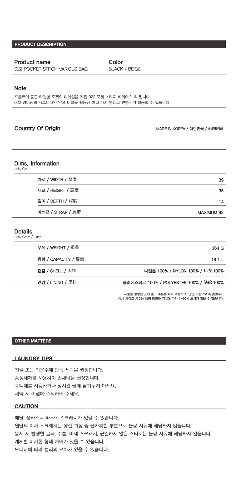 022 POCKET STITCH VARIOUS BAG-BEIGE