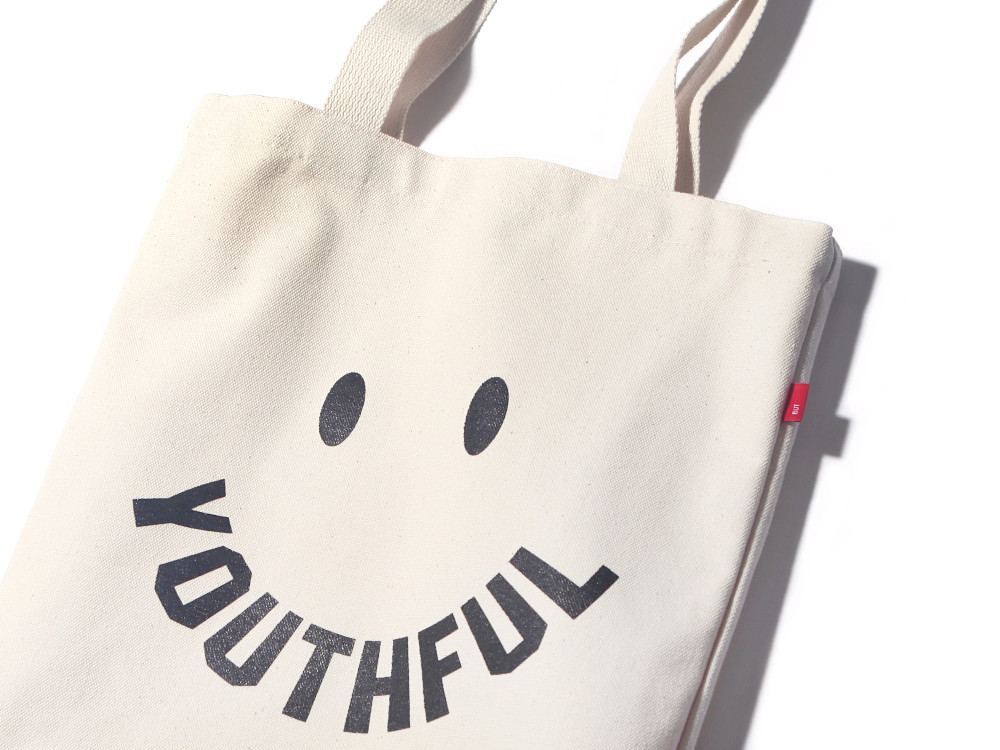 BUTDEEP의 슬로건 중 하나인 YOUTHFUL을 스마일 형태로 위트있게 제작하여 앞부분에 나염처리 한 것이 포인트 입니다.