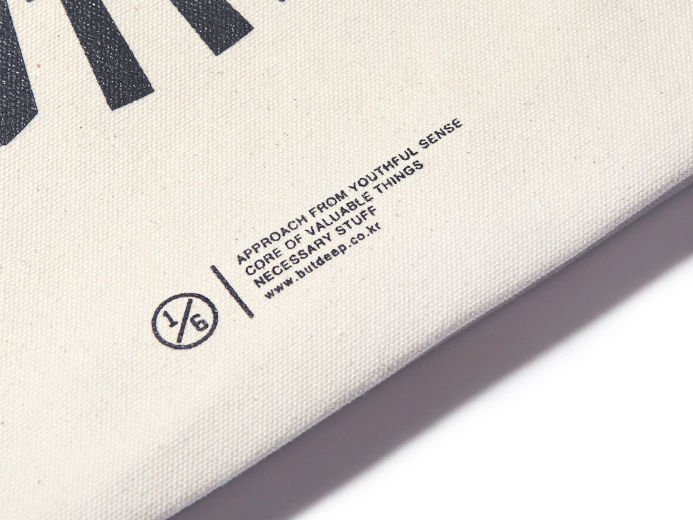 하단에는 BUTDEEP의 메인로고 중 하나인 MINIMAL LOGO를 나염처리 하였습니다.