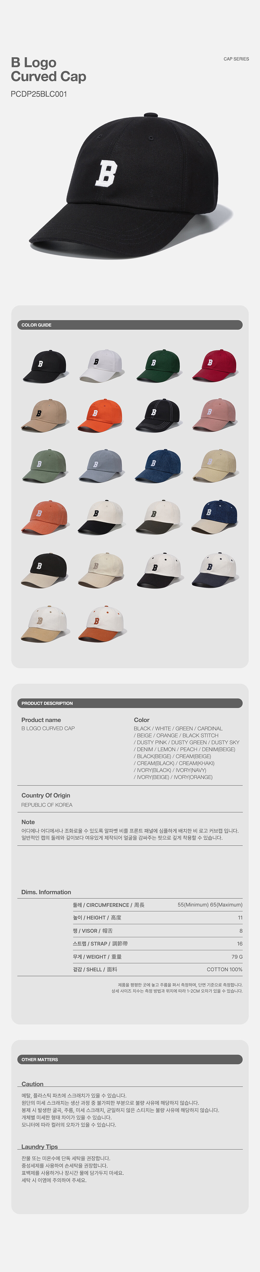 · 볼 캡의 챙은 얼굴을 감싸주는 형태를 연출하기 위해 8센치 챙을 사용했습니다. 후면의 스트랩으로 둘레 길이를 본인의 두상에 맞게 조절하여 착용할 수 있습니다.