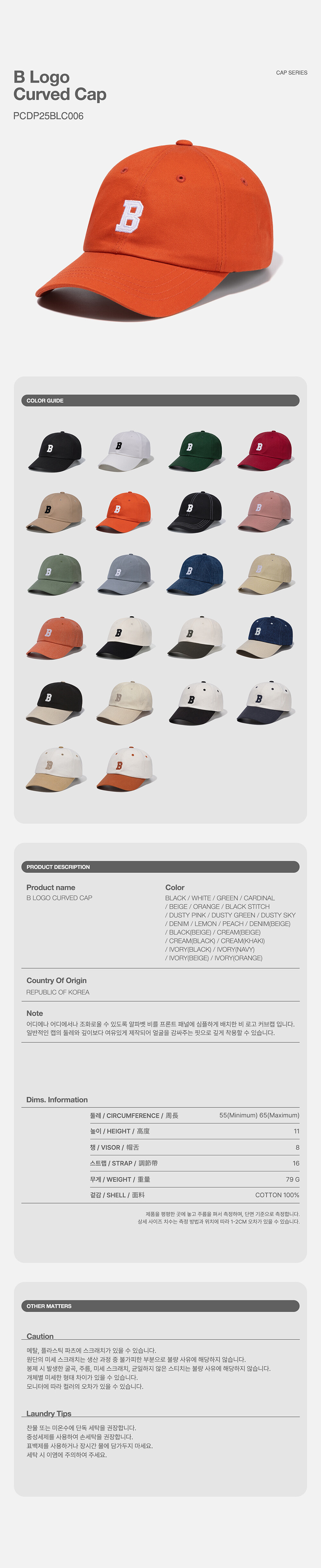 · 볼 캡의 챙은 얼굴을 감싸주는 형태를 연출하기 위해 8센치 챙을 사용했습니다. 후면의 스트랩으로 둘레 길이를 본인의 두상에 맞게 조절하여 착용할 수 있습니다.