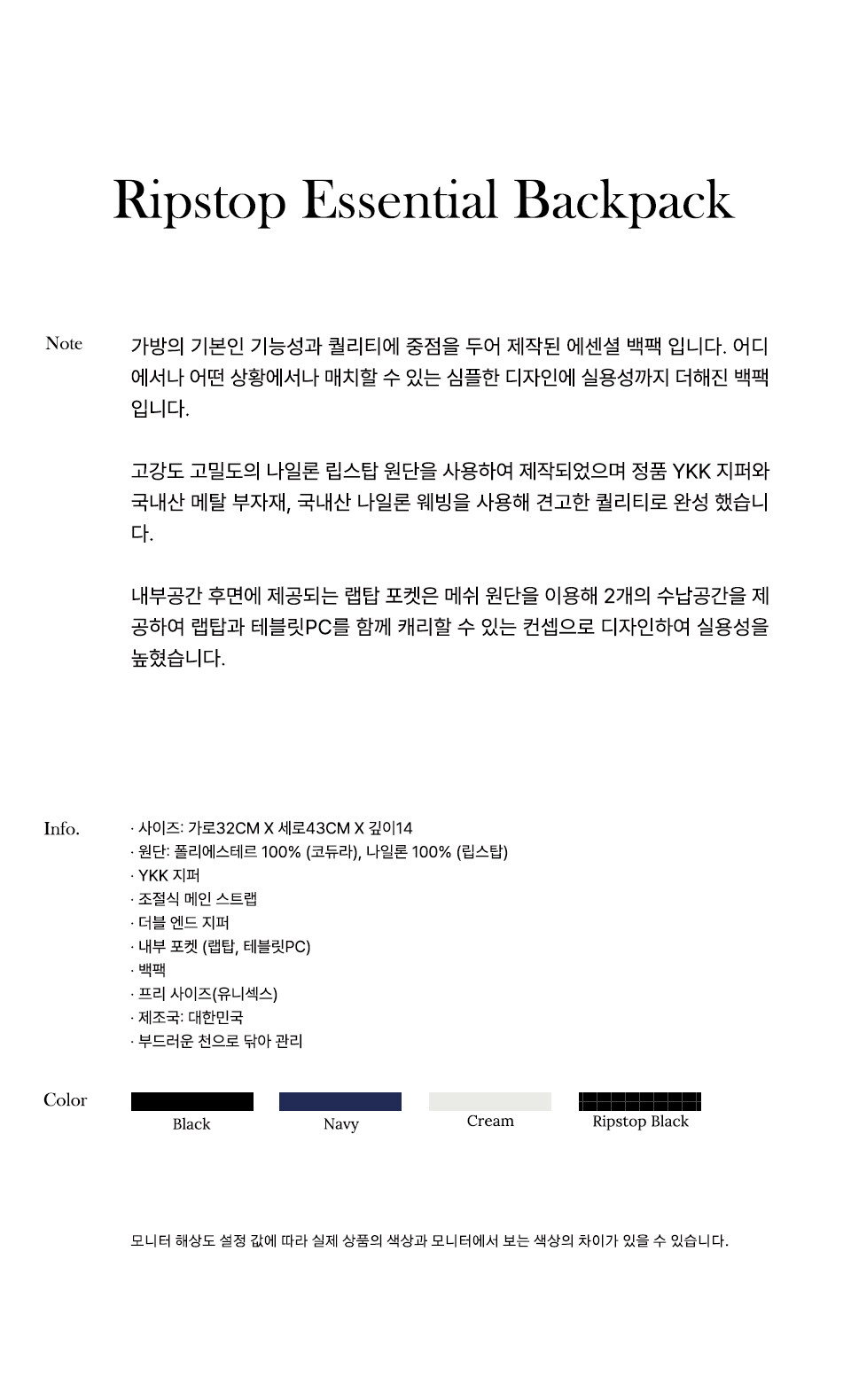RIPSTOP ESSENTIAL BACKPACK-BLACK