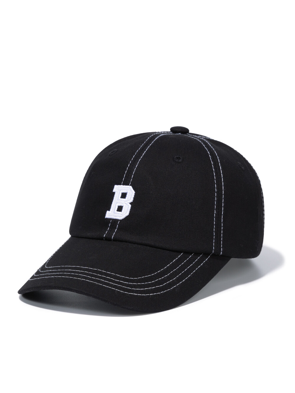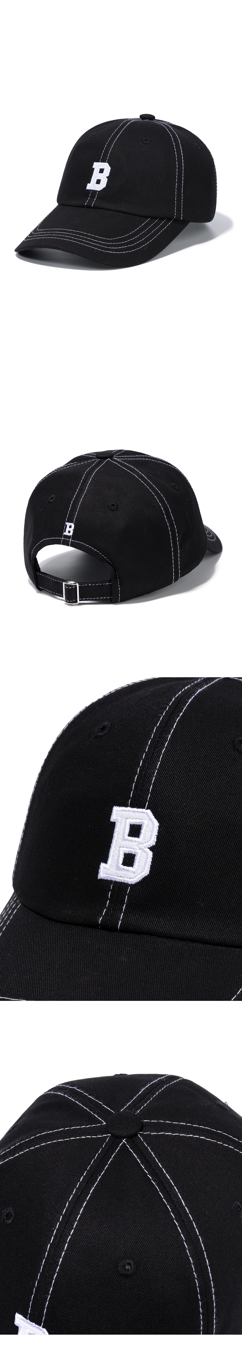 B LOGO CURVED CAP-BLACK STITCH