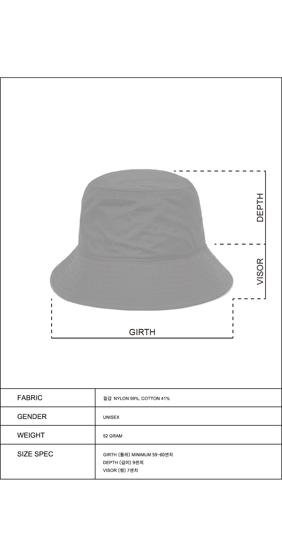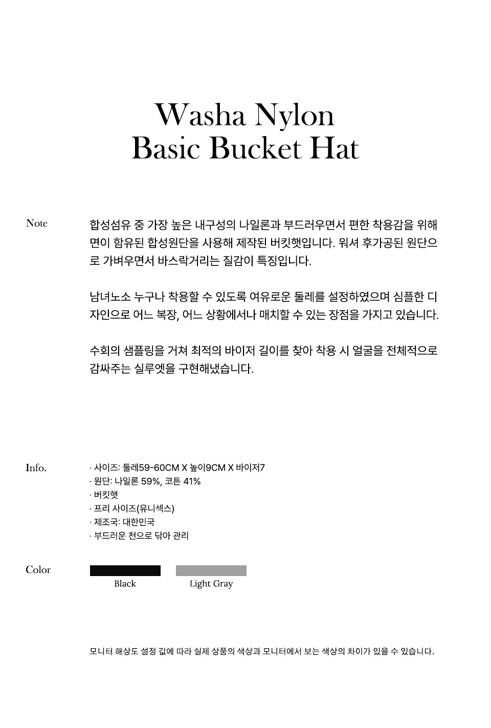 WASHA NYLON BASIC BUCKET HAT-LIGHT GREY