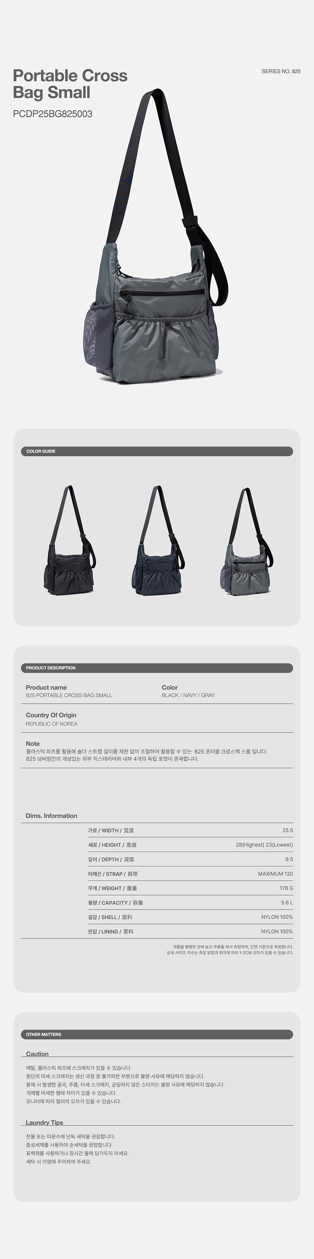 825 PORTABLE CROSS BAG SMALL-GRAY