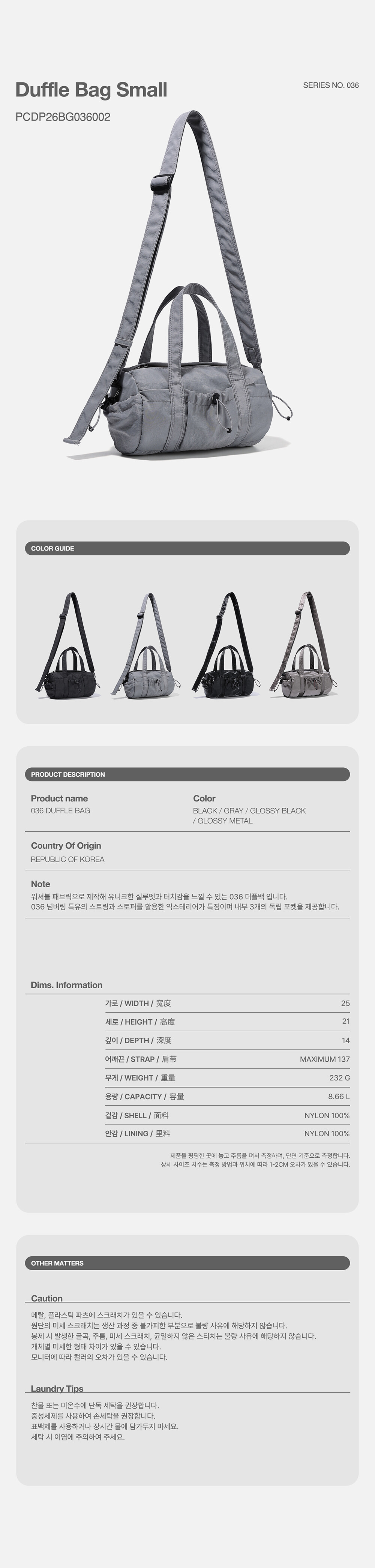 036 DUFFLE BAG SMALL-GRAY